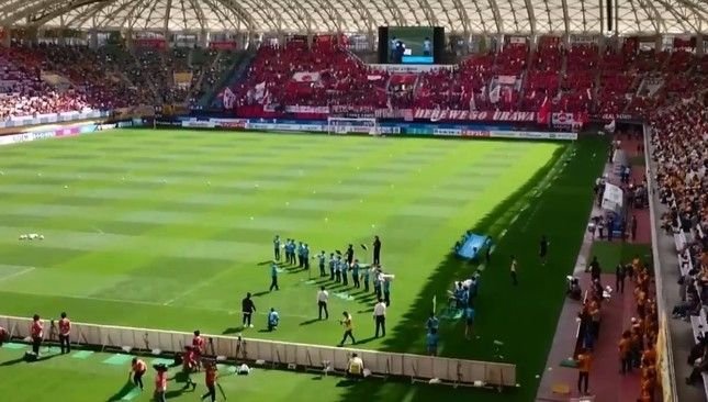 だが、この「復興ライブ」の真っ最中に、浦和サポーターが「チャント」と呼ばれる応援歌を歌い始めた。現地にいた観客が撮影した動画を見ると、中学生らの演奏をかき消すような勢いで、大音量のチャントがスタジアムに響く様子が分かる。