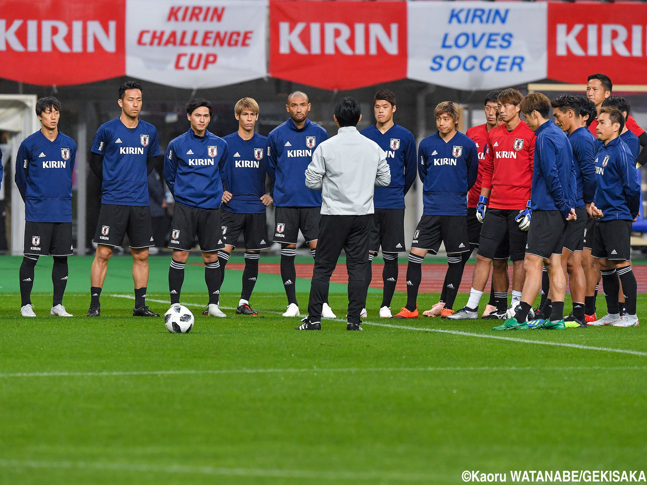 DF槙野智章、DF室屋成、DF佐々木翔、MF青山敏弘、MF南野拓実の5人は森保ジャパン初陣となった9月11日のコスタリカ戦(3-0)に続いて先発する。ゲームキャプテンは青山が務める。