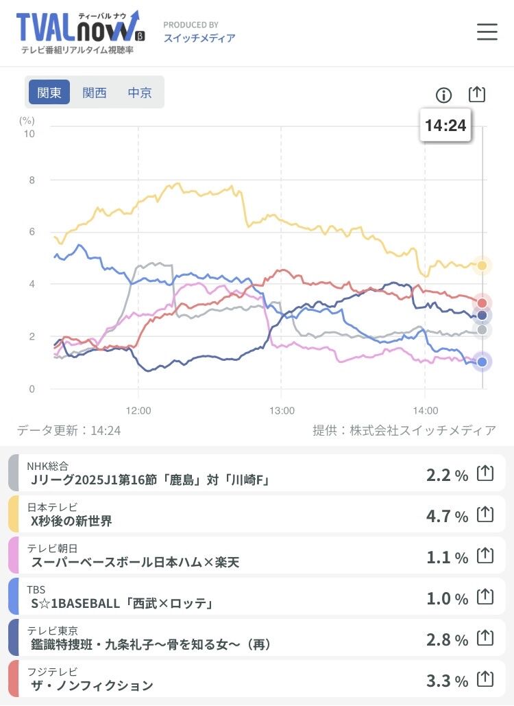 【悲報】プロ野球、Jリーグに視聴率でボロ負けしてしまうwwwwwwwww