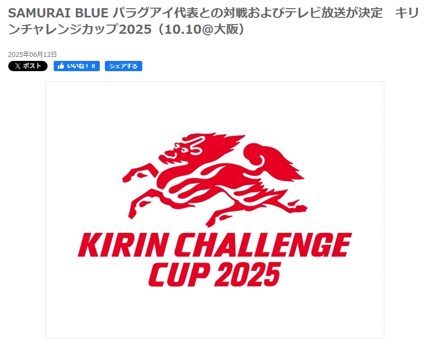 日本サッカー協会(JFA)は12日、10月10日にパナソニックスタジアム吹田で開催されるキリンチャレンジカップ 2025で森保一監督率いる日本代表がパラグアイ代表と対戦することを発表した。