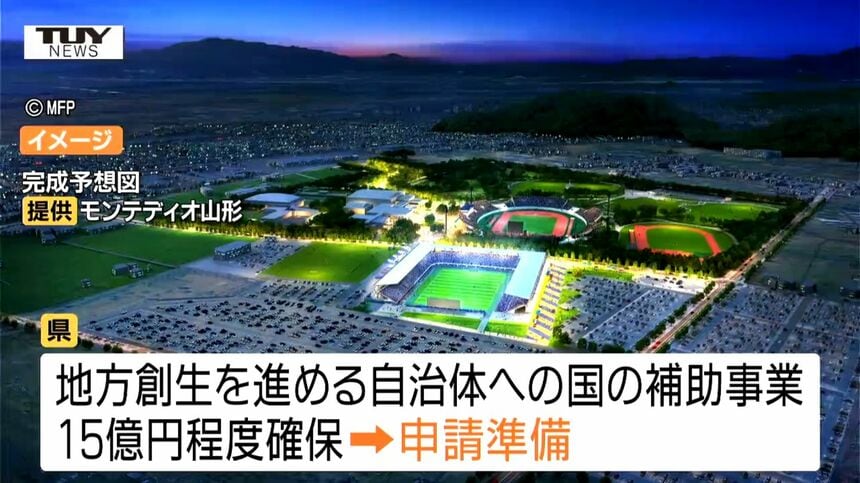 モンテディオ山形が天童市に建設を予定している新スタジアムの建設費用について、県が、国の補助制度の活用を近く申請する方向であることがわかりました。
