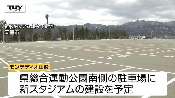 モンテディオ山形は、天童市の県総合運動公園南側の駐車場に新しいスタジアムの建設を予定しています。