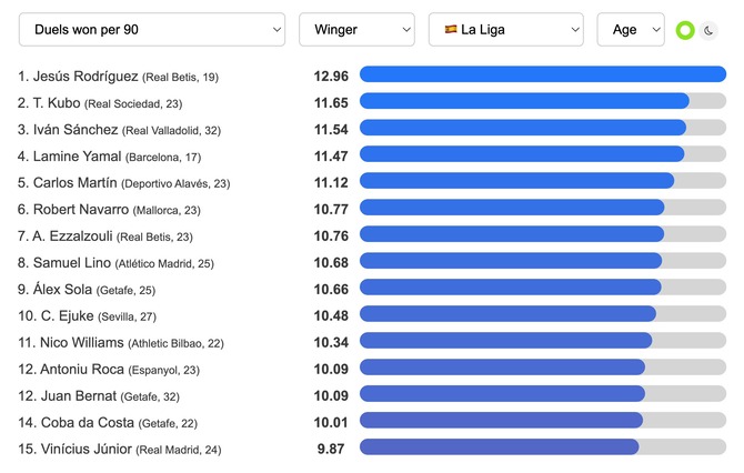 🇪🇸 La Liga Wingers: Duels won per 90