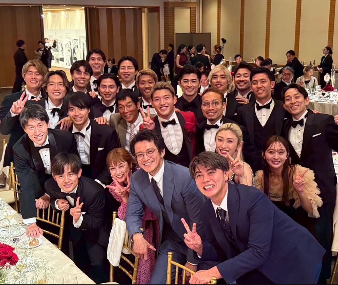 久保建英ら日本代表の主力がタキシード姿で集結。さらに別の投稿では明石家さんま、小栗旬と山田優の夫妻、長友の妻・平愛梨らとの写真も公開されていた。「スペシャルなゲストも参列してくださって感謝です!!!」と感謝していた。