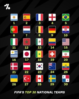 また、1位から5位までは変わらず。6位はUEFAネーションズリーグを制し、ひとつ順位を上げたポルトガル代表が入っている。