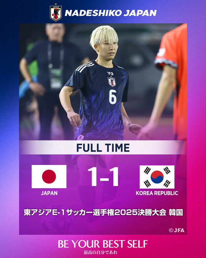 3連覇を目指すFIFAランク7位の「なでしこジャパン」は、同21位の韓国女子代表と対戦し、1―1で引き分けた。
