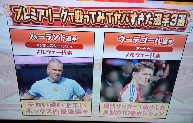 番組終盤、プレミアリーグで自身がすごいと思った選手を聞かれた遠藤はマンチェスター・シティのノルウェー代表FWハーランドとアーセナルの同じくノルウェー代表MFウーデゴールを選出。
