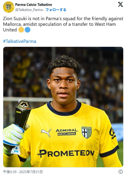 【速報】パルマのGK鈴木彩艶、PSMマジョルカ戦メンバー外!これは移籍確定かwwwww