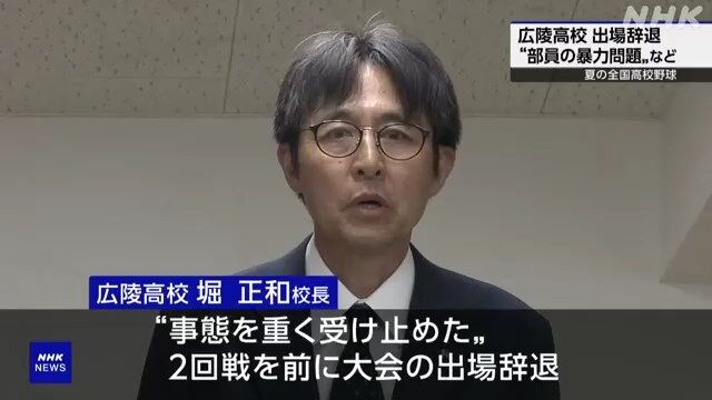 翌6日には同事案について「全国高校野球選手権大会出場の判断に変更はない」と日本高野連が発表。同校は1月に寮内で暴力行為があったことを認め、被害生徒に謝罪する文書を発表。4人の2年生が1人の1年生の部屋を個別に訪れ胸を叩くなどの行為があった。事実関係を聴取し「直ちに広島県高野連を通じて日本高野連に報告」したとした。SNSで拡散する情報について関係者に聴取した結果、新たな事実は確認できなかったとした。