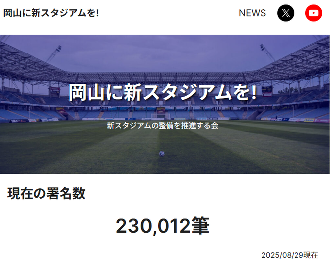 今のスタジアムの収容人数がJ1でも最も少ない部類のため、サポーターなどが6月から始めた署名活動は、今日、23万筆を超えました。伊原木知事は「数字の上がるスピードから勢いを感じている。」と評価しました。