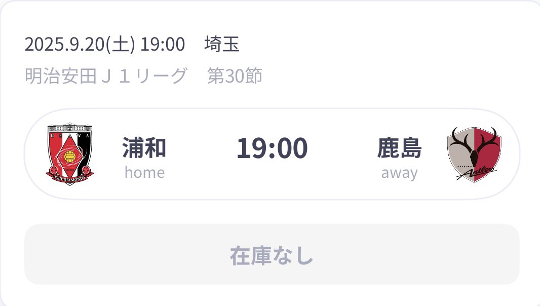 浦和レッズは9月19日、J1第30節・鹿島アントラーズ戦(20日に開催)のチケット予定販売枚数が終了(完売)したことを発表した。