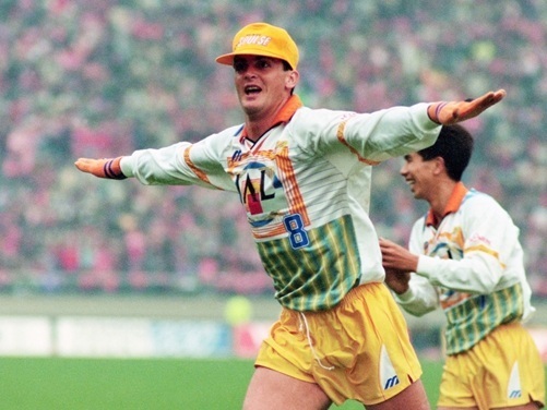 93年5月16日のJリーグ開幕節・横浜フリューゲルス戦のゴールを皮切りにリーグ戦32試合出場13得点だった。