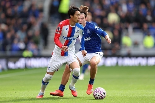 好調のクリスタル・パレスは前半から主導権を握り、開始早々からFWジェレミ・ピノの右足シュート、MFタイリック・ミッチェルの左足シュートがエバートンのGKジョーダン・ピックフォードに襲いかかる。前半12分にはDFクリス・リチャーズのロングスローを起点に攻め込むと、DFマクサンス・ラクロワの強引なクロスに鎌田が右足ボレーで合わせ、DFマイケル・キーンにブロックされた。