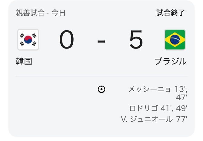 そして、同33分にはコーナーキックの守備からブラジルがカウンターを発動。再三チャンスに絡んでいたヴィニシウスがダメ押しの5点目を決め、韓国にとどめを刺した。