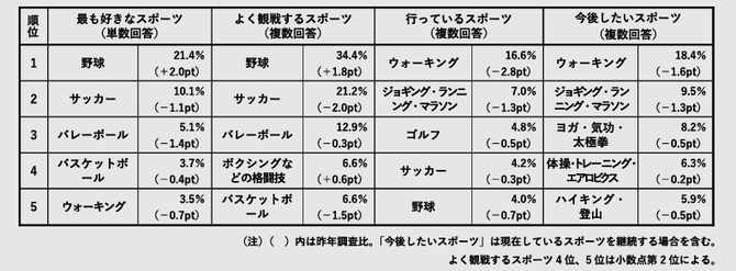 最も好きなスポーツは「野球」で22年連続首位、今年はさらに人気が上昇。