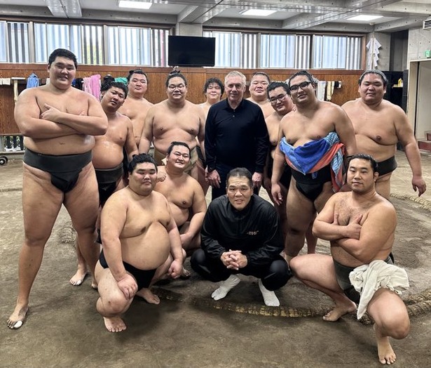 アンチェロッティ監督が自身の公式インスタグラムに、土俵の中で玉ノ井親方と所属力士たちに囲まれた記念写真を「光栄に思います」とつづって投稿。玉ノ井部屋も公式エックス(旧ツイッター)に写真を投稿し、「サッカーブラジル代表アンチェロッティ監督が玉ノ井部屋に稽古見学にいらっしゃいました。世界的な指導者をお迎えできて光栄でした。」と報告した。