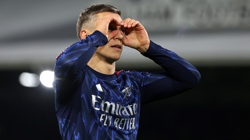 アーセナルは前半15分、DFユリエン・ティンバーの対角への大きなサイドチェンジに抜け出したFWレアンドロ・トロサールが巧みなコントロールでバイタルへ落とすと待ち構えていたDFリッカルド・カラフィオーリがダイレクトシュート。ボールはサイドネットへ吸い込まれ、先制点かと思われたが惜しくもオフサイド。神出鬼没なアーセナルの左サイドバッグがフルハムゴールを脅かす。
