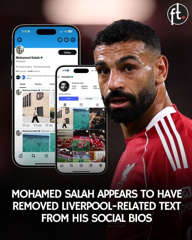 🚨 Mohamed Salah has seemingly deleted all Liverpool-related mentions from his bios on both X (Twitter) and Instagram.