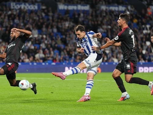 ソシエダは前半16分、久保の代役で出場しているMFゴンサロ・ゲデスが素早い右足の振りでクロスを送ると、MFヤンヘル・エレーラが反応したことで相手のハンドを誘発。PKを獲得し、FWミケル・オヤルサバルがこれを決めて1-0とした。