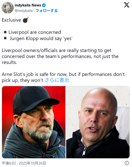 ついに海外の複数メディア(のタブロイド紙系)が、「スロット監督、解任の危機」そして「後任としてユルゲン・クロップ前監督が電撃復帰する可能性」を報じ始めました!