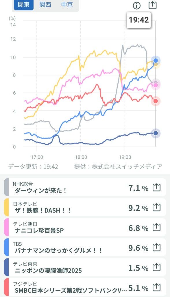 関東地区では第1戦がTBS(後6・11)、第2戦がフジテレビ(後6・30)で中継され、平均世帯視聴率が第1戦10・1%、第2戦は6・0%(ともにビデオリサーチ調べ、関東地区)だった。