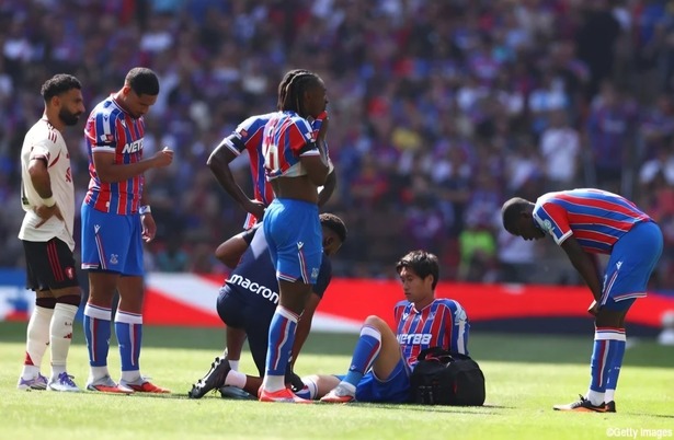 今季、パレスの中盤に君臨し「王様」となっていた我らが鎌田大地選手が、78分に相手の激しいタックルを受け、右つま先を負傷。そのまま途中交代となってしまいました。